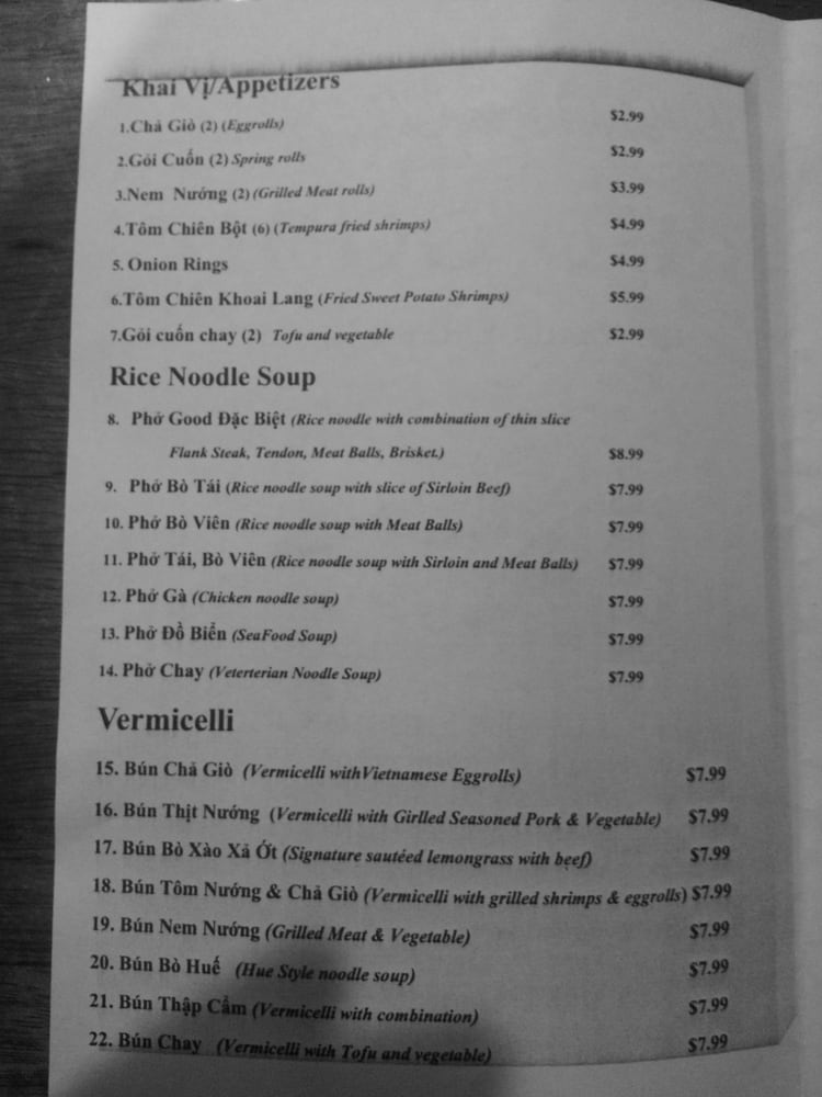 Pho Good Menu (Update 2025)